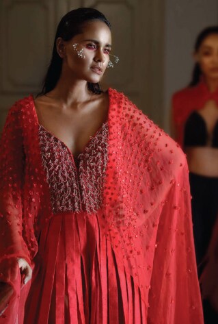 For all the neutral lovers out there, this one’s for you! The universally accepted delicious hue is a treat for our eyes. From jackets to kurtas to bags, you choose a category and find your favourite shade. No longer just a base, the shade stands on its own in a monochrome look or paired with warmer tones. We are seeing a strong success of this shade in collections by Duet Luxury , Saaksha and Kinni and more designers.