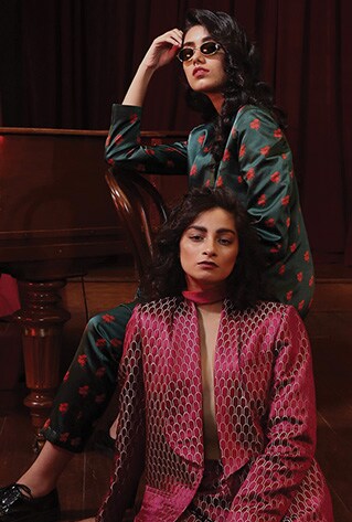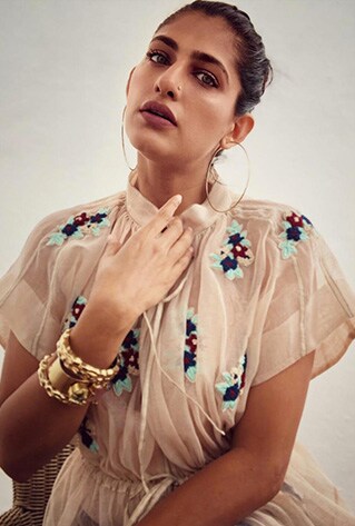 The Koi series by Shivan & Narresh is inspired by the tribal aesthetics of the indigenous art form-Gond Art. The decorative motifs, patterns and luscious drapes compliment every holiday mood. The Koi series includes 6 prints characterised by dots, dashes, lines and circles. Capturing the inner nuances of the art form and the designers travel experiences, the collection is envisioned for the millennial who loves exploring. Vibrant hues, eclectic patterns and delicate fabrics, brought the art form to life and left us craving for a vacation.