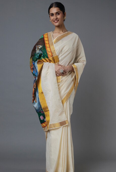 Kasavu Hand Painted Saree