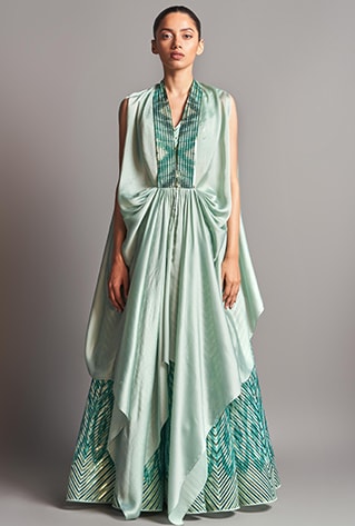 Taglined ‘The blooming of a flower, the beat of your heart’, the collection is inspired by nature and its magic of constantly changing settings and our moods. Euphor thus witnesses a range of colours and styles that resemble the various elements of the cosmos. Ranging from lehengas and pre-stitched sarees to draped skirt sets and capes, the drop features amazing cocktail outfits.