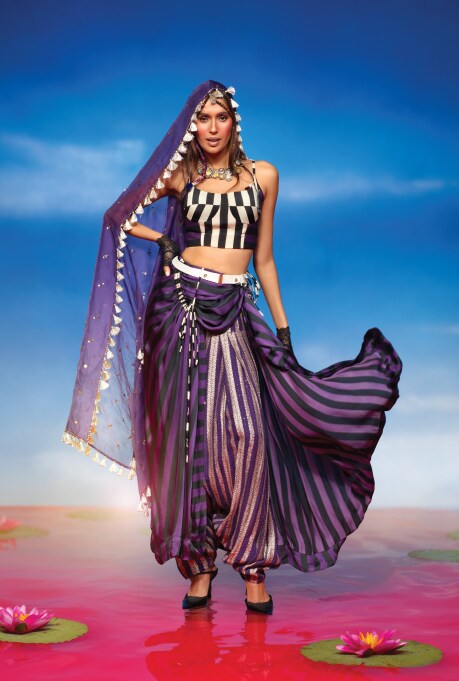 Designers across the country, like Aseem Kapoor, Payal Singhal, Nupur Kanoi, Masaba, Papa Don’t Preach Prêt, and more, are exploring rich, multifarious prints with abstract designs and classic stripes, creating a captivating narrative of colours and textures that is pushing the boundaries of conventional fashion. Their creations draw inspiration from Bohemian style, integrating draped fabrics, fringes, frills, and lace, resulting in garments that exude freedom and creativity.