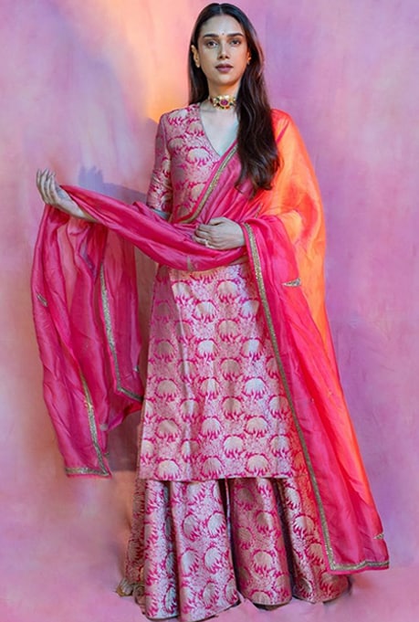From heritage-infused anarkalis to scene-stealing shararas, Aditi’s looks are all about classic charm. Here’s a roundup of some of Aditi Rao Hydari’s go-to designer labels, whose creations guarantee to make heads turn everywhere you go.