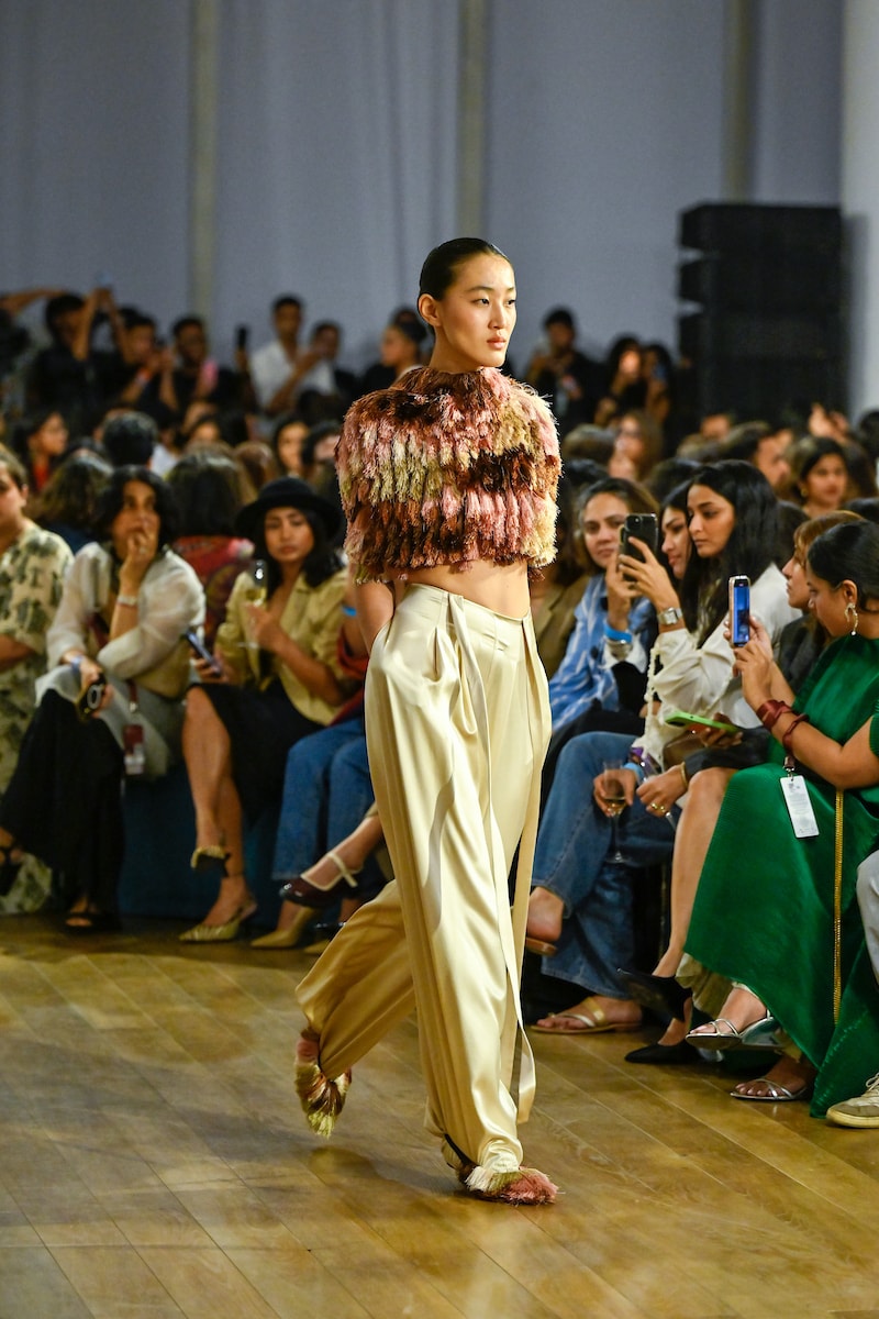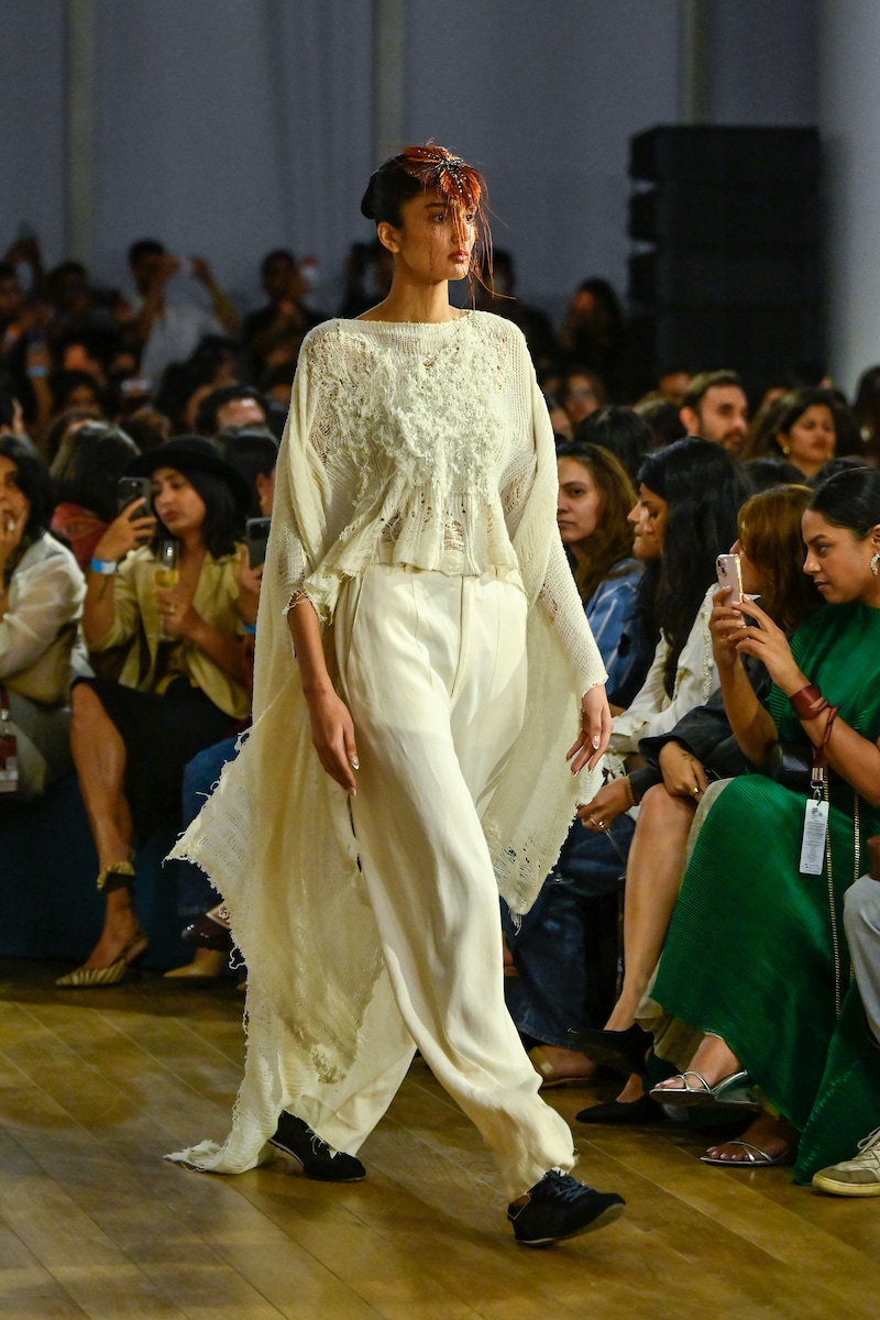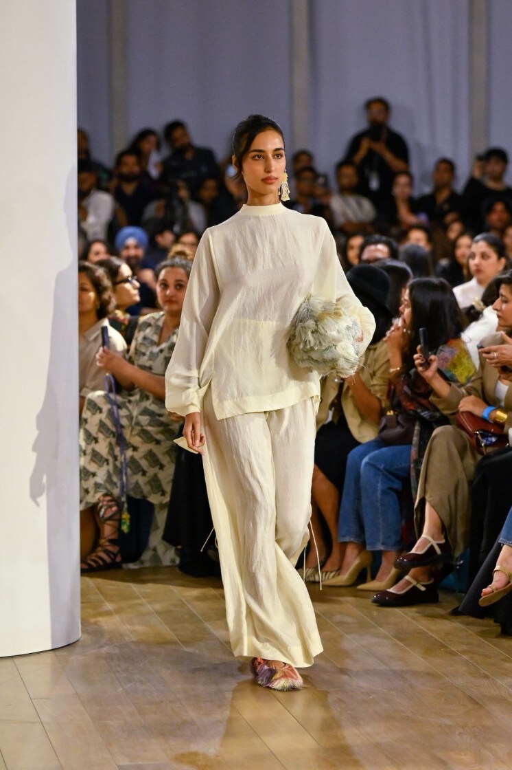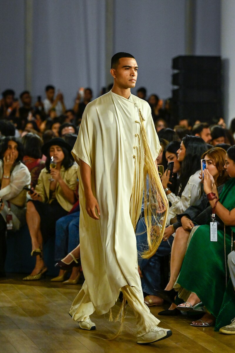 The collection focused on garments that could be styled, layered and worn in multiple ways, reflecting a relaxed yet confident design approach. The runway clothes highlighted ease in shape and the freedom of versatile separates designed for contemporary wardrobes. From draped dhoti pants and ruffled asymmetric tops to relaxed co-ord sets and floor-length gowns, the silhouettes balanced comfort with visual impact. The garments moved effortlessly between statement dressing and everyday wearability, offering pieces that felt adaptable without losing their distinctive character.