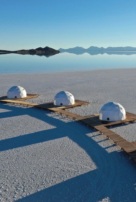 Disconnect from worldly worries and relax in minimalist luxury surrounded by the Uyuni Salt Flats of Bolivia at the Kachi Lodge, which is the ultimate glamping destination. The modern dome architecture gives the resort the look of a space station situated in the middle of the arid flats. Detox from the digital world with traditional Bolivian cuisine by day and enjoy unobstructed views of the starry skies by night.