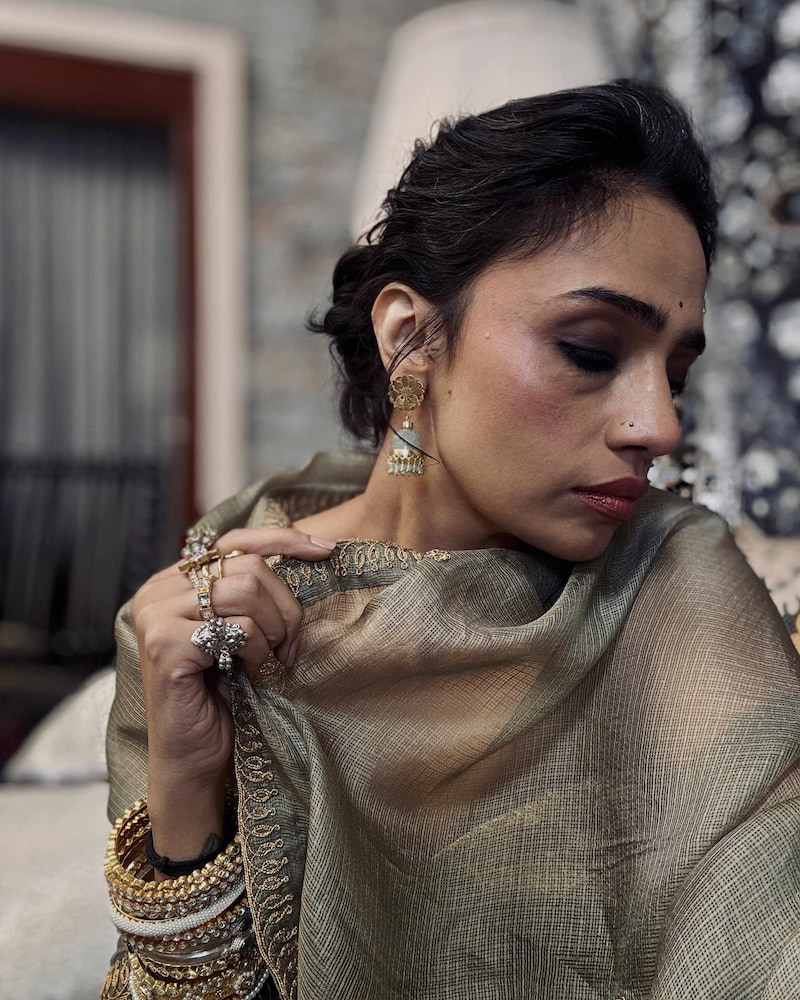 Be it block prints, gamchha checks, plain linens or just denims with a white shirt, Toor makes sure to elevate every outfit with her thick kadas, anghootis and long chains. In a world that romanticises minimalism, Toor displays a kind of brazen maximalism that’s rooted in Indian craftsmanship. “Textiles, for me, arrive before words. They feel like memories, especially those of my nani, always wrapped in the finest weaves without ever naming them. Choosing one region or weave over another feels wrong, almost unkind to me. I’m instinctively drawn towards handloom – Jamdani from Bengal, Tangaliya from Gujarat, Kunabi Weave from Goa; anything that still remembers the hands that made it. I don’t look for perfection; I look for soul. When I wear these textiles, it feels like carrying something forward.”