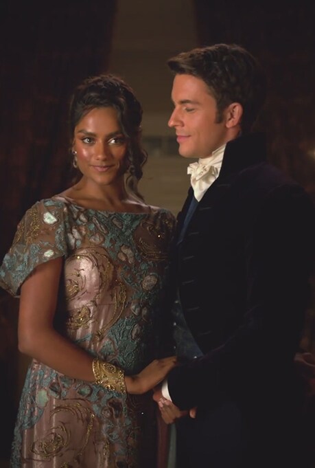 John Glaser, Bridgerton’s lead costume designer, said while commenting on a change in her style in season 3, “We veered away from unnatural colours for her and used all natural colours, like skin tone colour and colours of water. We wanted her to look warm, and like she’s coming back from a warm climate. We also wanted to show that she had nothing to hide. She’s coming back from home, she’s married, she’s a strong woman, and she’s not going to hide her heritage.”
