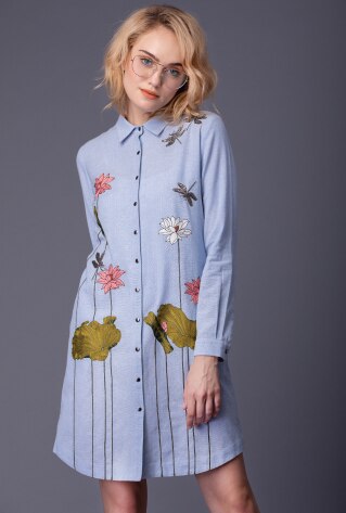 The Sartorialist uses different motifs relevant to a routine like bicycles, lamps, balloons, clouds, bugs, etc rendered in 3-dimensional embroideries to narrate a unique story through the designs. Lending chambray a chic personality, the designer tailors jumpsuits and shirt dresses which have been donned by several celebrities like Manushi Chillar, Kiara Advani, Bhumi Pednekar, Soha Ali Khan and many others.