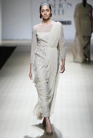 Freshly injected into the festive wear scene, shades of grey are anything but basic. Grey hues evoke earthiness while luring the onlookers with its effortlessness naturally. Refresh your festive wear closet with unconventional stone, ash or pale greys. Monochrome is the way to go for an exquisite appeal. Take a detour from traditional wedding-appropriate reds and yellows and experiment with dusky greys for a fashionable trousseau.