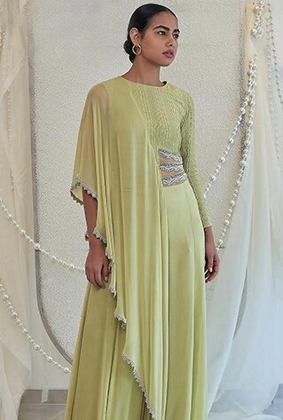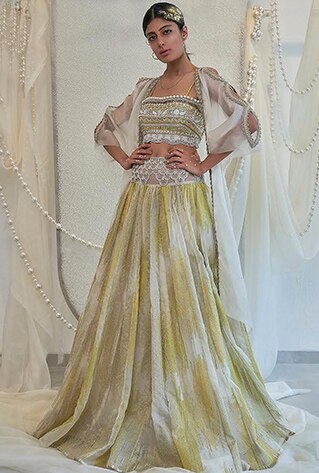 With her affinity for layers and textures, Ridhima Bhasin constructs the classic staples of Indian festivities with contemporary styling. Boasting of the perfect blend of ethnicity and modernity, light and fluid pre-attached dupattas go perfectly with high-octane shenanigans and dancing while her wispy capes shine out like an extra layer of grandeur to make you the belle of the ball. Statement blouses are big this season so if you’re looking to take the drama high-octane, a perfect power play of drapery is all you need. Customized with pre-draped dupatta extensions, a Ridhima Bhasin anarkali is the most-loved piece from her repertoire.