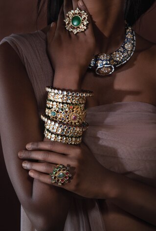 Statement jewellery could be the modern norm, but choosing the classic layering style will win you a royal-inspired charm for your loved one’s big day. Mix & match sleek contemporary pieces with high-on-shine styles like stacked kundan embedded bangles, temple jewellery and layered polki necklaces from your heirloom collection, and the result will be simply visionary.