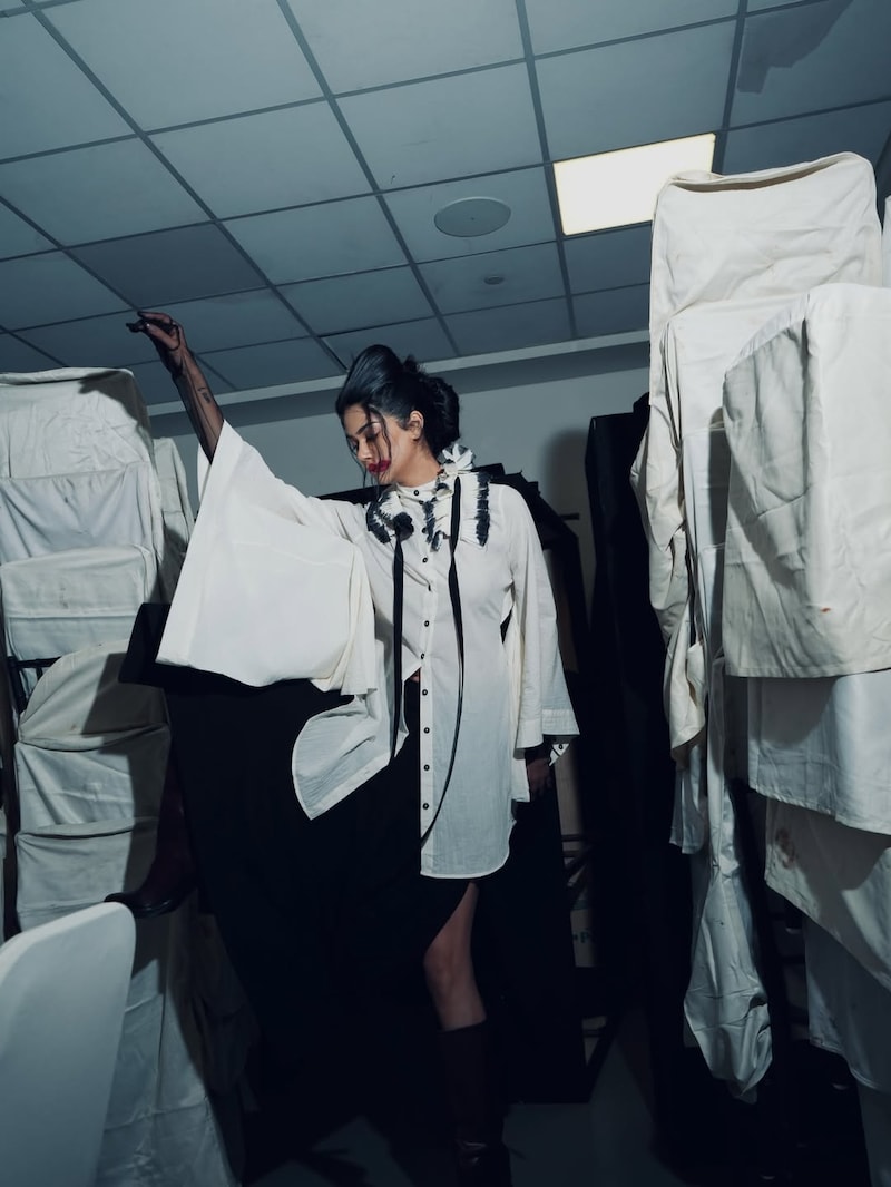 At Lakmē Fashion Week, Chola The Label’sEchoes in Monochrome” unfolded as a considered study in restraint and release, where black and white shifted beyond opposition into a continuum. The runway assumed a performative quality, with movement and form navigating the tension between simplicity and complexity.