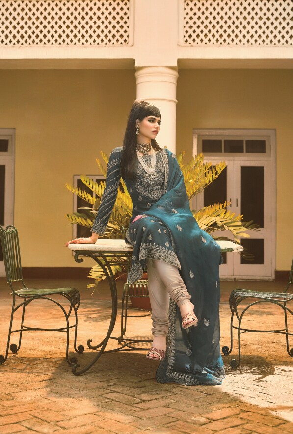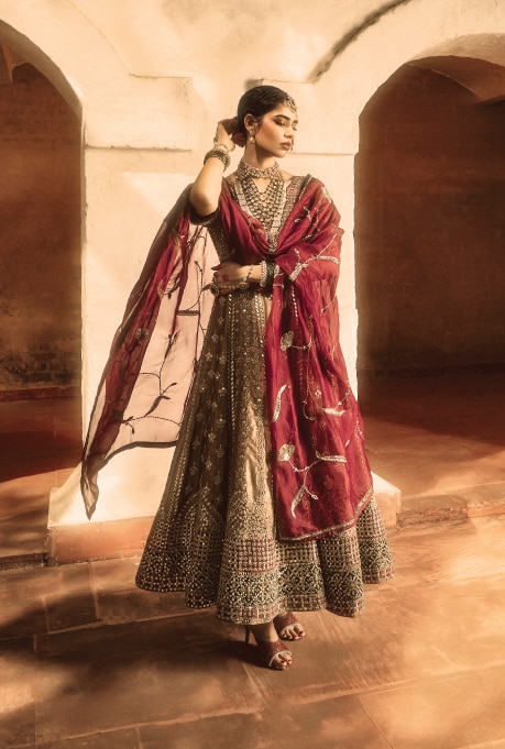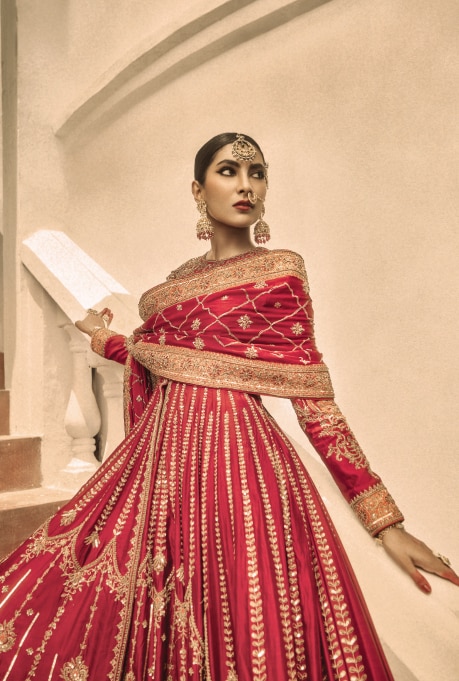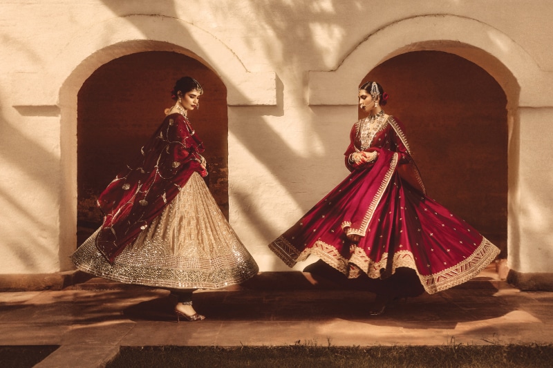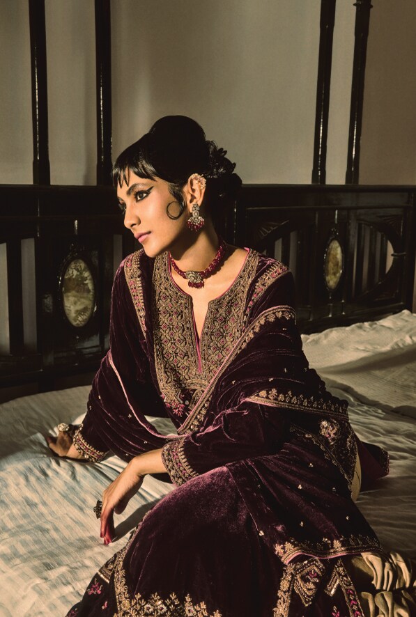The 1970s was a time for understated elegance. In contrast to the flamboyant hairdos of the past decade, during this era, women opted for flatter hairstyles. The bouffant hair was still prevalent but less voluminous. Historic silhouettes got a retro revamp, with shorter lengths that allowed women to feel comfortable and glamorous. Anarkalis were now hemmed above the ankle and tunics were fashioned to an above-knee length. As a result, richly embroidered Anarkalis, shararas and farshi ghararas became a prominent trend, and women preferred them for all kinds of festive celebrations.