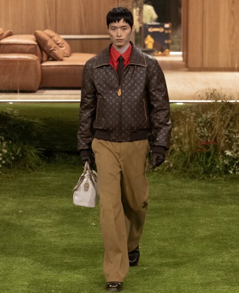 Material innovation reinforced this sense of pragmatic elegance. LV Silk-Nylon – a hybrid fabric combining the softness of silk with the structure of leather – appeared throughout the collection, bringing fluidity to the mix. It was paired with a new technical textile with a softly crumpled finish, lending jackets and shirts a relaxed, lived-in quality. Together, these fabrics suggested clothes designed for movement.