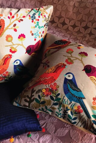 Winding up the celebrations with binge-watching Netflix for a couple of hours? Catch up on old series that had all your siblings glued to the t.v. Bed quilts, covers and cushions in a cohesive bright colour palette by Karmadori will sync in with the celebratory mood while boasting of your fine choices too!