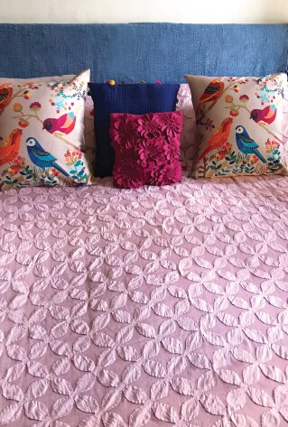 Winding up the celebrations with binge-watching Netflix for a couple of hours? Catch up on old series that had all your siblings glued to the t.v. Bed quilts, covers and cushions in a cohesive bright colour palette by Karmadori will sync in with the celebratory mood while boasting of your fine choices too!