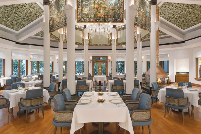 Admire the beauty of snow-clad Himalayas as you book a stay at the former residence of Lord Kitchener, erstwhile commander in chief of the British army, Wildflower Hall. Situated on a picturesque hilltop in the summer capital of British India, Shimla, this grand estate now hosts personalised Yoga sessions led by expert instructors. Experience Wildflower Hall’s royal elegance at their mountain view rooms or deluxe suits equipped with private woodfire. Their exquisite Lord Kitchener Suite surpasses the rest and sets the bar high for grandiose holidaying. Designed with plush furnishings, an ornate fireplace and a spectacular mountain view, this room is reminiscent of the estate’s royal history. Unwind at this historic property amidst the Himalayas that also offers its guests a royal fine dining experience serving cuisine complemented by forest fragrances on their spectacular terrace. If you visit during the winter months, traditional bonfires will take the ambience up a notch while providing warmth. The adjacent glass conservatory offers a quasi al fresco experience, as you dine in the sunlight or under the stars.