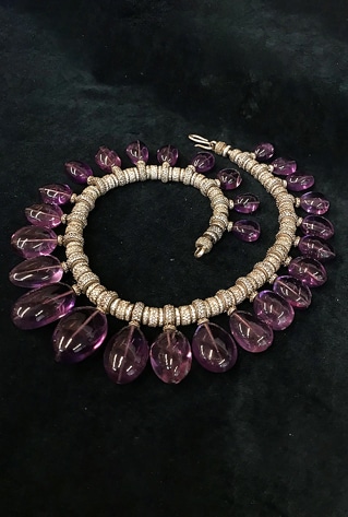 As a natural calming agent, amethyst is known to relieve anxiety and elevate your mood. Keeping the healing properties of the violet gem in mind, invest in this standout amethyst necklace from Tarun Tahiliani to regulate your aura and up your style game!