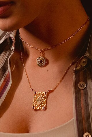 Jewellery has always been an emotional purchase. Something to celebrate a hallmark occasion, something to express your love. With more inclination towards sartorial choices that make you feel good and match your wavelength, designers are iterating designs and style that says more about your individuality. From zodiac-sign-focused birthstones to metallic initials on our necks, lobes and fingers—jewellery pieces resonating with your personality are more charming than ever. Parallelly, another aspect of spirituality and positive vibe is being translated to talismans, evil eye and religious text patterned pieces.