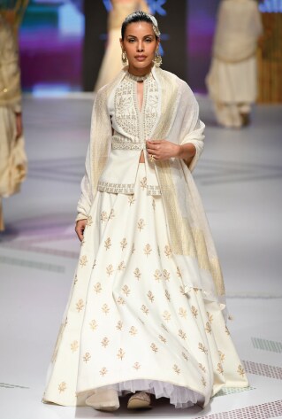 Handcrafted weaves deserve to be glorified to the fullest. Redefining luxe and glamour, lehengas customized in handloom fabrics are winning the season with their quintessential Indian appeal. If you fancy minimalistic charm, a monochrome off-white matka silk lehenga is a perfect choice. Lehengas in benarasi, ikat weaves and khadi are most-coveted for the festive season. Tap into your roots choosing a lehenga with signature weaves for your bridal trousseau.