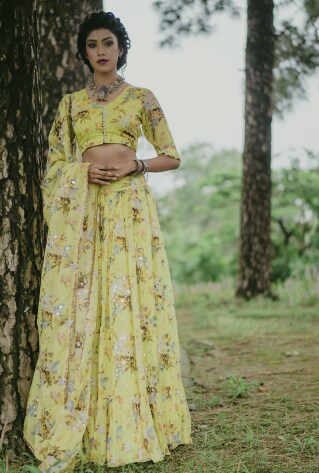 Elegant or edgy, floral prints never fail with their universal appeal. To dress up demure silhouettes, floral prints are being mastered with eccentric artistry to cut the monotony of the past seasons. Vintage florals are passé; designers are interpreting lush tropics and scenic gardens to give lehengas a new style quotient. Mavens point out that lehengas in artsy chintz florals are perfect for an upbeat festive flavour and destination weddings.