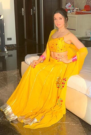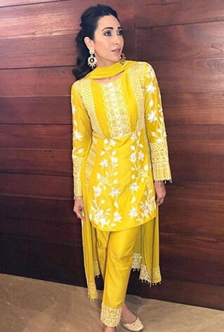 Karisma Kapoor and Manish Malhotra together deliver the best fashion moment. The actress gave us all the more reason to fancy yellow this festive season adorning a floral embroidered kurta ensemble by the designer. Pin this look to revel dawn to dusk celebrations