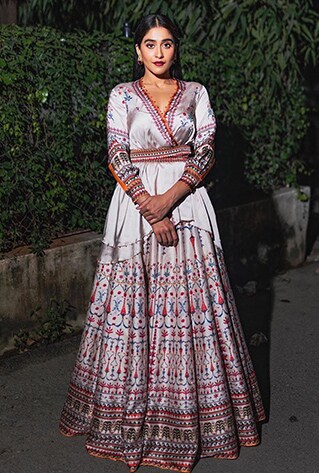 The new-season lehengas are anything but demure. Regina Cassandra’s bohemian take on festive allure in this Rajdeep Ranawat look is setting the perfect mood for a twirly statement. Take notes and get experimental to exhibit your fashionista flair in statement prints and silhouettes this season
