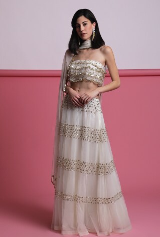 If you’re a bride-to-be looking to incorporate your innate millennial vivacity in your wedding appearances, a monochrome or neutral lehenga is a perfect choice. The look can be perfect for a bridal shower or a pre-wedding dinner. You can always build up the opulence with traditional accessories or give it an understated nod for low key wedding affairs.