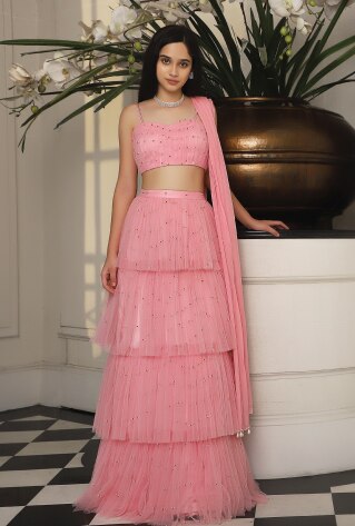Pastels like icy mints and blush hues manifest a timeless essence. Complement your bridal glow with a pastel lehenga detailed with tonal embroideries for a pre-wedding get-together. Powder blue, jade or a sage green shade will dress you up like a belle in a trendy and versatile number. The look will manifest the best of both worlds- a feast for the eyes and a nifty move on the budget.