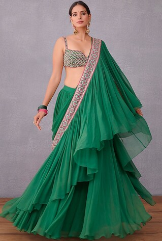 A woman never forgets her first— the earliest memory of wearing the sari. And wearing it as a newly wedded holds a special place for the right reasons. The classic six-yard ruffle sarees have a charm that can outlive fads. It has a transformative power that lets you experiment with it in umpteen ways. The pre-draped renditions, on the other hand, carry the narrative of iconic style statements of this decade into the future. Gaurav Gupta’s signature sculpted iteration offers an enchanting allure one would love to hold on to. Torani imbibes a romantic charm into the pre-draped sari with noteworthy ruffles and a statement blouse.