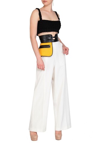Move onto your bottoms. Based on whether you’re going to layer a jacket/blazer on top, your bottoms need to match your blouse as well as the blazer and if you’re not adding a blazer, then they need to be a powerful match with the blouse.
