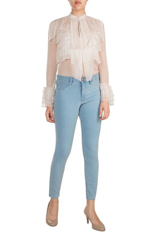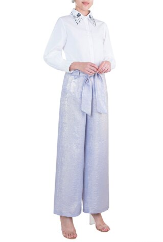 Move onto your bottoms. Based on whether you’re going to layer a jacket/blazer on top, your bottoms need to match your blouse as well as the blazer and if you’re not adding a blazer, then they need to be a powerful match with the blouse.