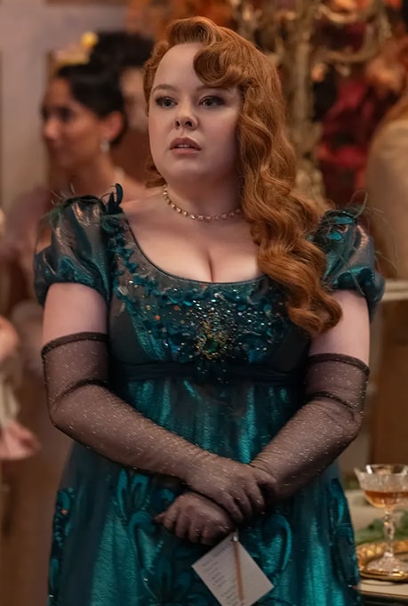 Penelope, who’s also the mysterious Lady Whistledown, holds the reigns this season. We won’t spill much since no one likes a spoilsport, but we will take a look at her glow-up this season and see the evolution of her wardrobe from citrusy shades to tones that compliment her complexion and her auburn hair.