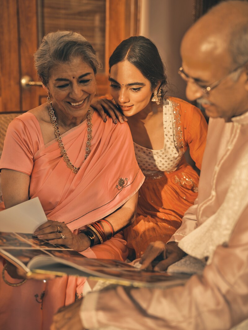 On Gita: Raw Mango, Vastraa Jewellery, Diosa Paris; On Vanshika: Label Nimbus, Zevar by Geeta; On Arun: Countymade, Asuka