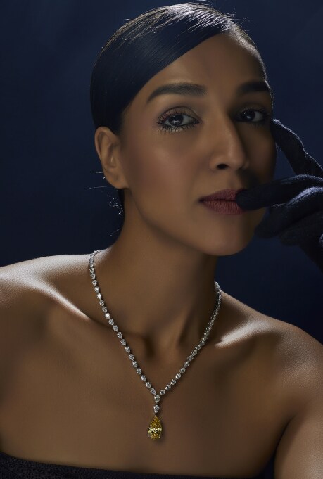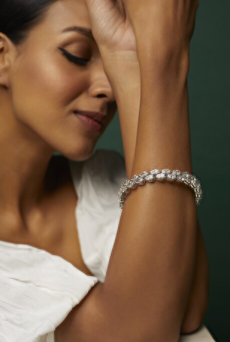 No woman’s jewellery box is complete without magnificent cocktail pieces that she brings out on special evenings. When stepping out for glamorous parties, you can always count on that one pair of statement earrings to steal the limelight. The Swarovski danglers by Janvi Sachdeva Design will guarantee a dramatic entrance every time! Whether it’s a dazzling shoulder duster or larger-than-life studs, an exquisite ear-charmer can dial up your look by several notches. Put on a sleek black gown and heels, and let your earrings do all the talking. Add timeless glamour to your evening looks with an iconic diamond necklace like the one by Diosa Paris Jewellery. With this magnificent piece, you can look like a style Goddess in any outfit and exude regal elegance!