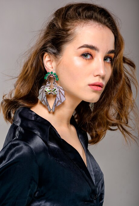 The one jewellery trend that has been consistently in vogue for the past years is oxidised jewellery. From small stalls to fancy designer boutiques, oxidised jewellery is in popular demand everywhere! The fusion of bohemian and traditional elements make these designs popular amongst millennials and Gen Z. A classic oxidised piece everyone must own is a pair of statement earrings. The silver chaandbali by AAHARYA is the perfect piece to style with fusion, ethnic and western attires.