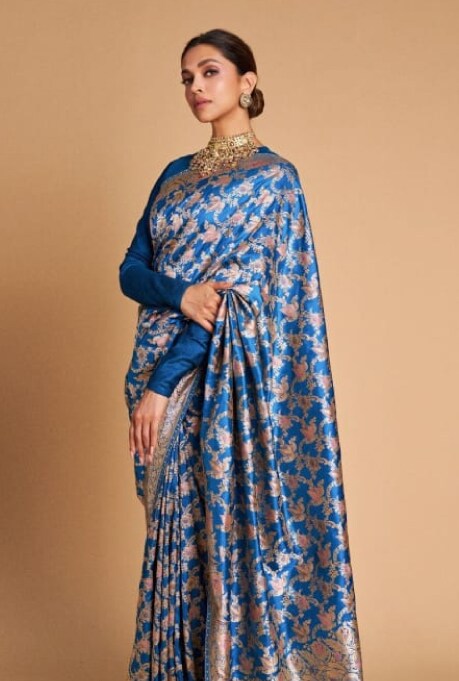While Kanchipuram silk is the crowning jewel in the South, Banarasi has a regal status in the North. Originating in the city of Varanasi, Banarasi silk was part of the Mughal courts and Nawabs as it was crafted with delicate real gold and silver threads. However, be it ancient or contemporary times, the allure of the exquisite drape still stands high. From Anushka Sharma’s classic red Banarasi Saree for her wedding reception to Deepika Padukone’s royal blue banarasi saree for an event, the banarasi saree reflects a mirror of India’s heritage-infused artistry blending with modern sophistication.