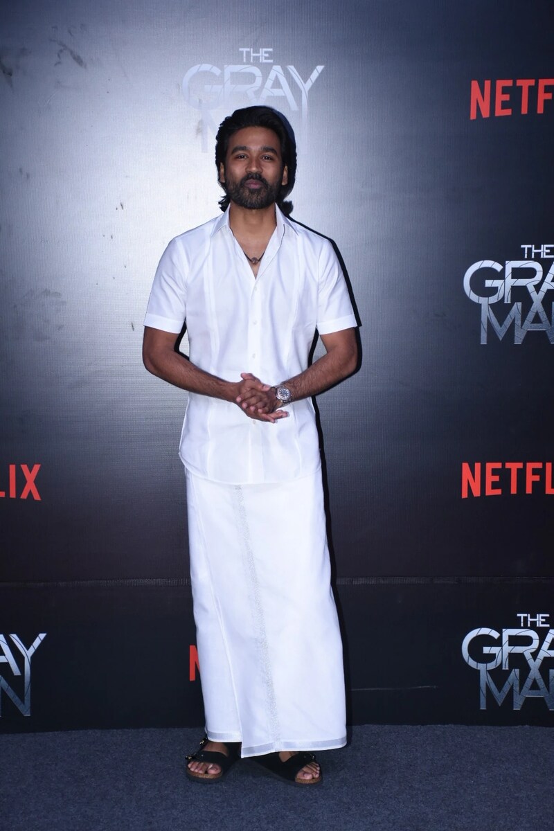 For a fuss-free yet impactful festive look, channel Dhanush in an all-white pairing of a crisp cotton shirt and classic lungi – a minimalist take that speaks volumes.