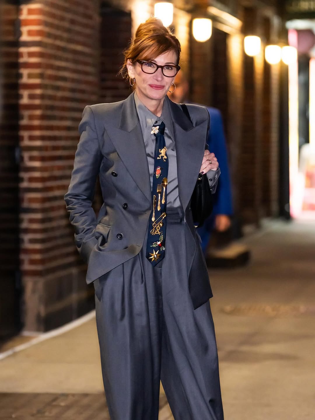 The tie is having a moment, and swapping the classic tie clip with a jewelled brooch feels fresh and fashion-forward. Placed at the centre of the knot, it creates a subtle bolo-inspired effect that feels modern and sharp. It is confident, slightly androgynous, and a refined nod to dandyism – statement-making without being loud.