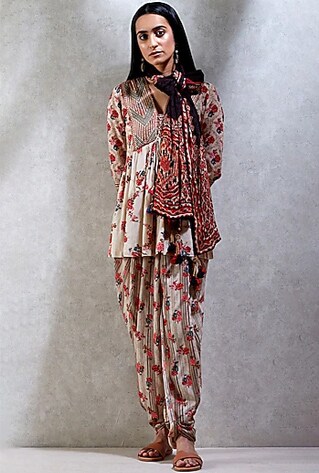 The changing times have also adapted them into staples beyond the realm of occasion wear. If you have not embraced the key cut salwar, this elegant and fuss-free pair of bottoms are even suited for your WFH code and loungewear wardrobe. The roomy form makes them an easy pair, ideal to be worn with longline tunics on off duty days. Got to be somewhere? A wispy stole with the set, and you’ll be primped up in a jiff.