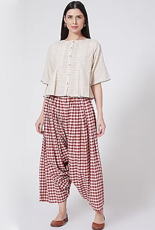 The changing times have also adapted them into staples beyond the realm of occasion wear. If you have not embraced the key cut salwar, this elegant and fuss-free pair of bottoms are even suited for your WFH code and loungewear wardrobe. The roomy form makes them an easy pair, ideal to be worn with longline tunics on off duty days. Got to be somewhere? A wispy stole with the set, and you’ll be primped up in a jiff.