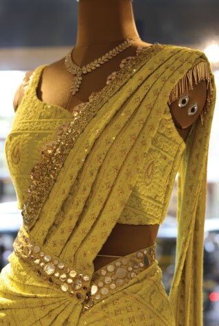 Easy to wear and sexy silhouettes! Our design sense is very contemporary, so you see a lot of sarong lehengas and draped sarees that are just easy to wear, yet extremely chic.