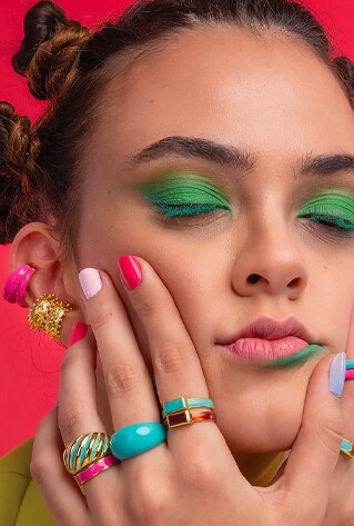 Translating into a bohemian style at once, ring stacking has become a clever interpretation of ‘less is more’ fashion. From astronomical stones and crystals to enameled metals, you can create a veritable rainbow. The rule is to enjoy composing the mix of colours, metals and stones that are endlessly interchangeable. Kirti Kulhari shows you how to make stacked rings a clever part of your selfie. Stack multiple rhinestone rings by Radhika Agrawal! Esme and Arvino reinstate that there is no need to curb your creativity when it comes to enhancing your manicure.