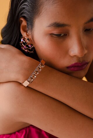 Imagine a ballet of light in your hands as you engage with the guests at the cocktail. From chain bracelets to bangles and cuff bracelets, two or three pieces are enough to set the tone. The links and beads stacked in layers by Shae reinstate the ultimate statement—you can never go wrong with all gold! Swarovski studded rose gold octagon bracelet by Esme can be your go-to piece to pair with your big-dial watch. You can also alter the charm with a chunky piece in one hand and dainty pairings in the other. Manushi Chillar makes a case in statement-makers by Radhika Aggarwal.