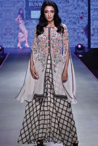 Our favourite interpretation of the trend was brought forth by the label Soup by Sougat Paul for his Pernia’s Pop-Up Runway collection, wherein we saw a solemn new-age inspired florals accents clubbed with geometric patterns in multi-coloured hues. The artsy masterpieces win hearts at first glance! A sustainable brand, Silkwaves used ingenious hand block printing to create linear patterns in a monochromatic colour palette to design their summer collection.