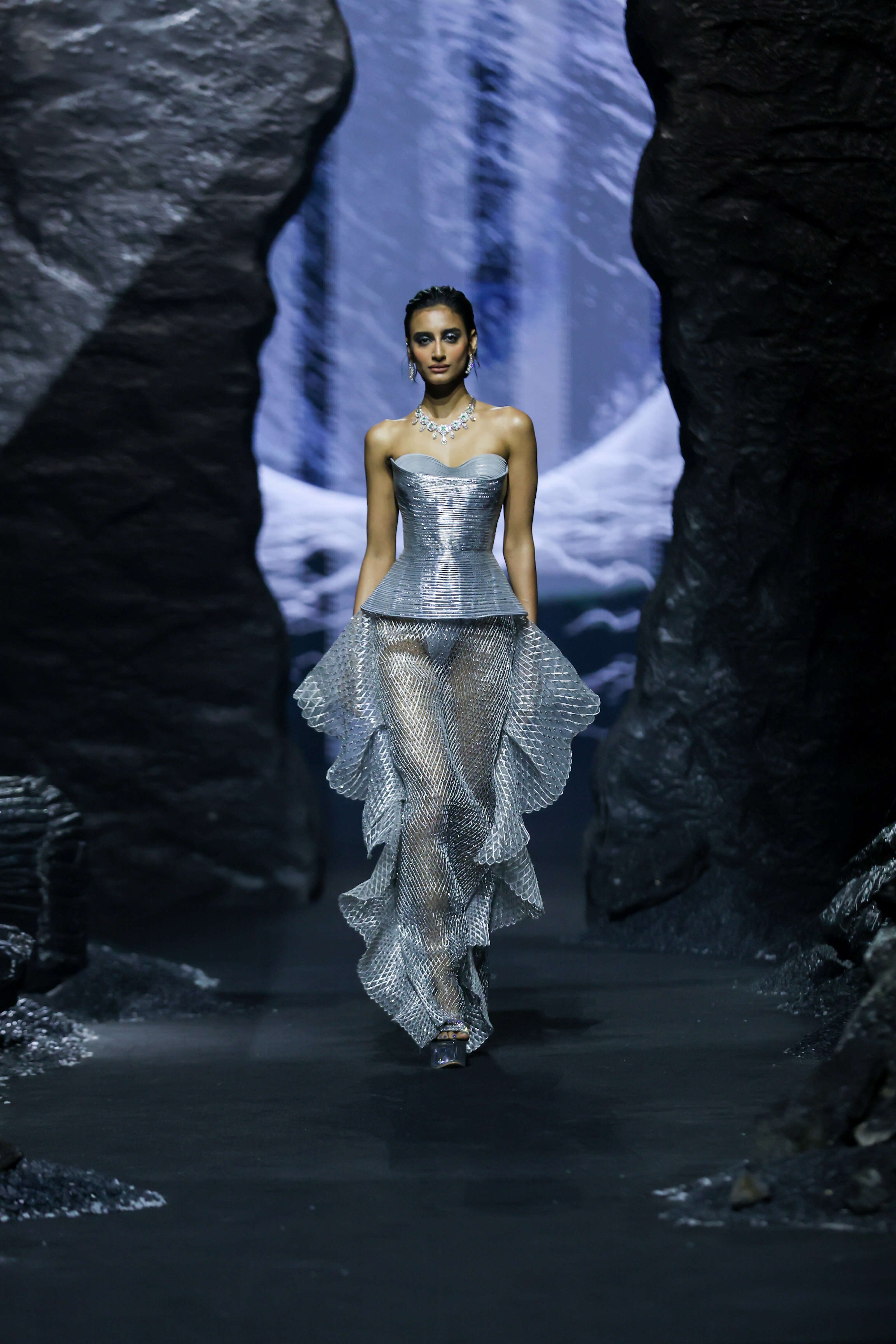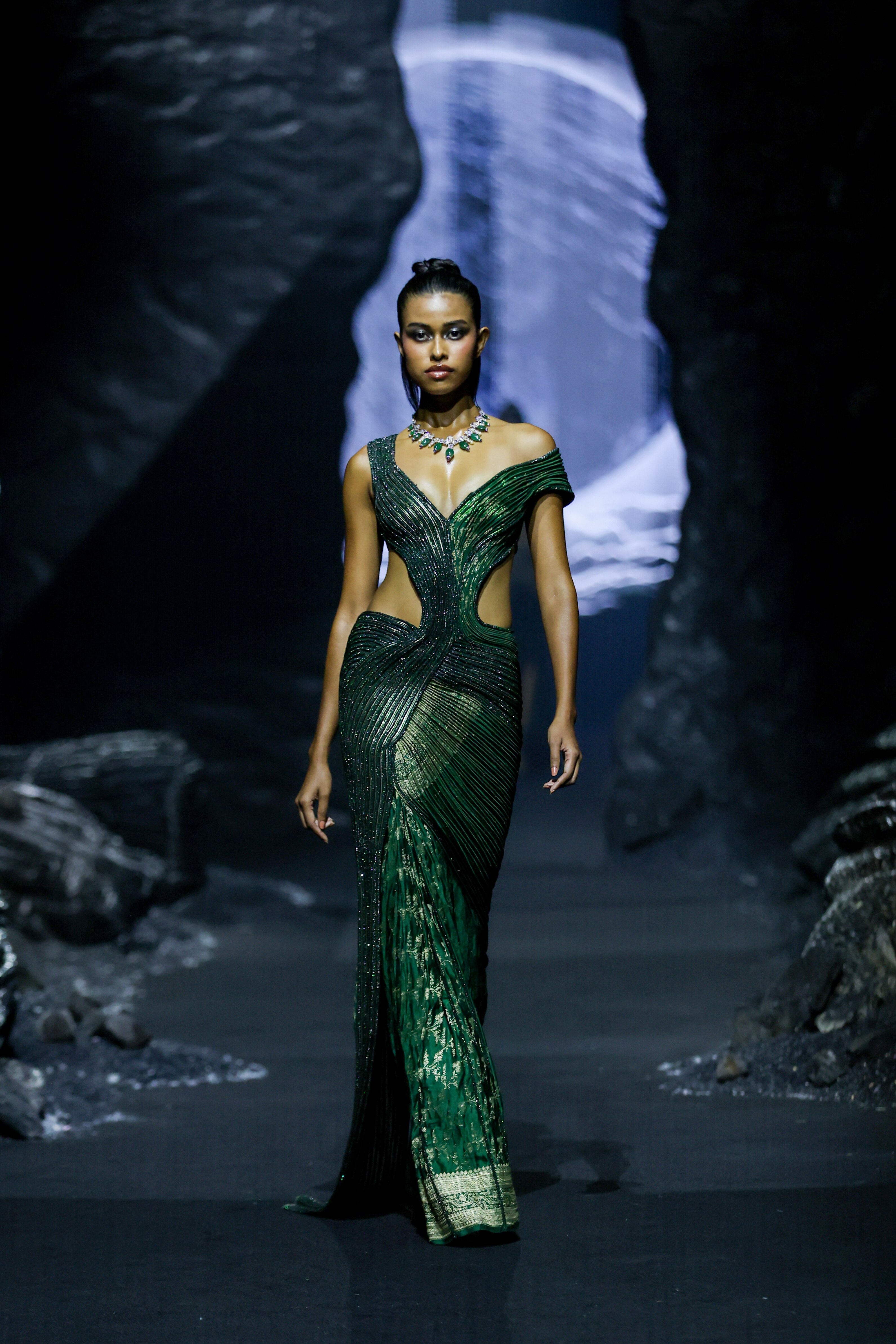 Shades like icy grey keep things cool and grounded, adding a quiet balance to brighter tones. Millennial pink moves toward a less saccharine approach – more composed and deliberate than ever, with styling choices that lend it a refined edge, reading as more powerful than its playful counterparts. Green is also getting its due, gracing red carpets with chartreuse or emerald tones that add richness and a touch of elevated glam.
