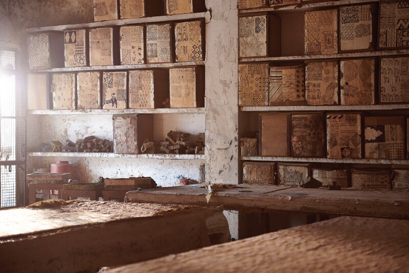 Different blocks are used depending on the design and the number of colours required. While crafting pieces for Kings and Queens, these wooden blocks were often replaced with brass ones to master the precision and clarity of intricate lines. Naturally, these metal or brass blocks were comparatively more expensive, making them a favourite amongst the nobility and higher classes of society. It is rather extraordinary how uniformity in printing is achieved with these blocks over hundreds of metres of fabric. The printers know where to place the next block by the corner ‘pitch pins’, which allow for the successful positioning of the blocks, rendering a consistent look throughout. However, the small imperfections in the prints make these textiles authentic and testify to their handmade nature.
