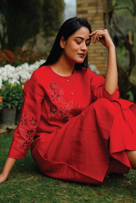 LB: Linen – the hero element of our brand – is a phenomenal gift from nature, and we make sure that we make the best use of it. Our brand ethos has a deep connection with nature, and that is evident in all our designs that are inspired by its elements like the flora and fauna. We try to display these exquisite aspects of the environment on our clothing through meticulous designing – whether it is hand-painted flowers or embroidered animals. At the same time, we do not want to overpower linen’s natural beauty with maximalist designs, which is why all our pieces are minimalistic yet statement making. Linen Bloom’s overall aesthetic lies in simplicity, evident in the free spirited, relaxed ensembles. Our designs across all categories feature a sense of easy elegance, balancing both comfort and style.