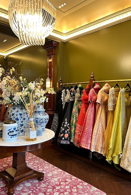 From regal lehengas to statement-making sarees, BIBI London Couture presents an exquisite array of Indian ethnic wear. Be it festive wear or wedding couture, the store houses prestigious Indian designers like Sabyasachi, Seema Gujral, Ridhi Mehra, Anita Dongre, Ridhima Bhasin, and others. From contemporary to traditional, they have a handpicked curation that fits every style. Beyond clothing, they offer a wide range of accessories and jewellery, making them a go-to place for luxury Indian wear.