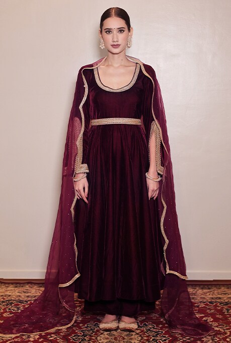 These flattering and free-flowing ensembles are perfect for any body type, and they exude a sense of Mughal grace. Discover the most exquisite and regal-looking Velvet Anarkalis from designers like Rohit Bal, Shrutkirti, Ikshita Choudhary, Monk & Mei, and many more!