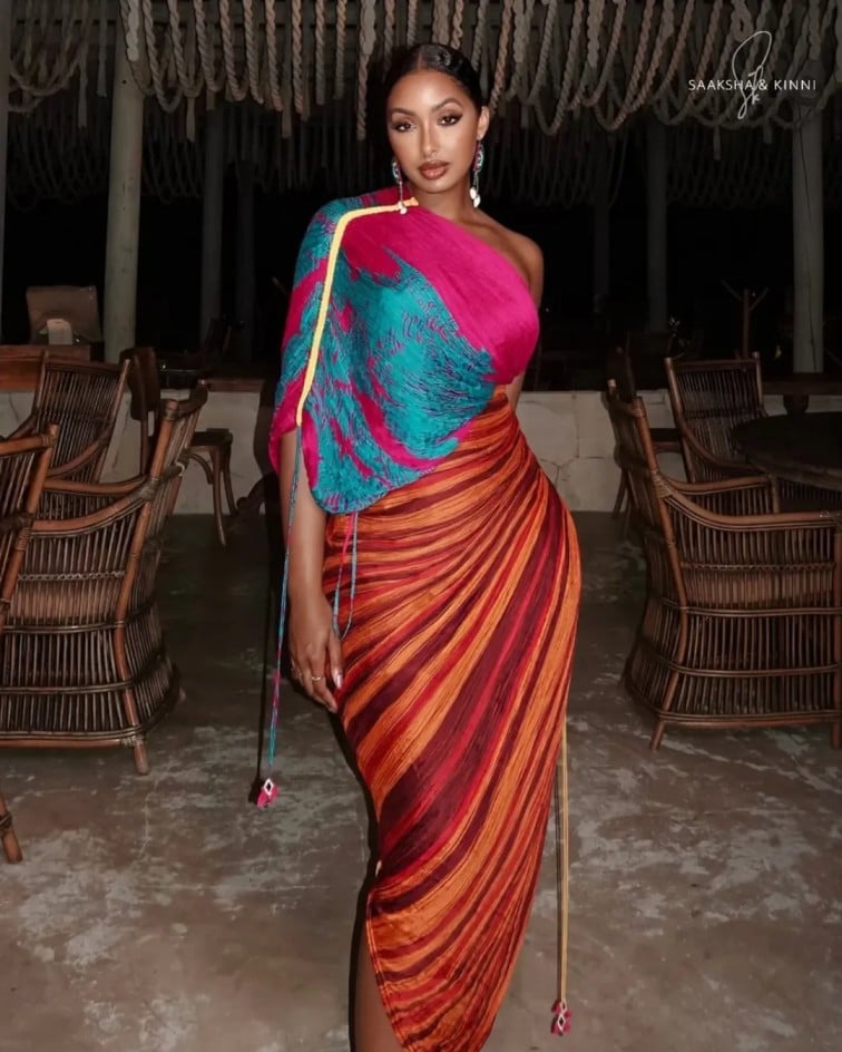 Saaksha & Kinni bring playful print sophistication to vacation wardrobes. The label’s vibrant prints and flowing silhouettes make it ideal for effortless holiday dressing. With dresses and co-ord sets that move seamlessly from daytime adventures to dinners, the collection blends ease with style. Modern tailoring offers travel-inspired designs that feel expressive and contemporary.